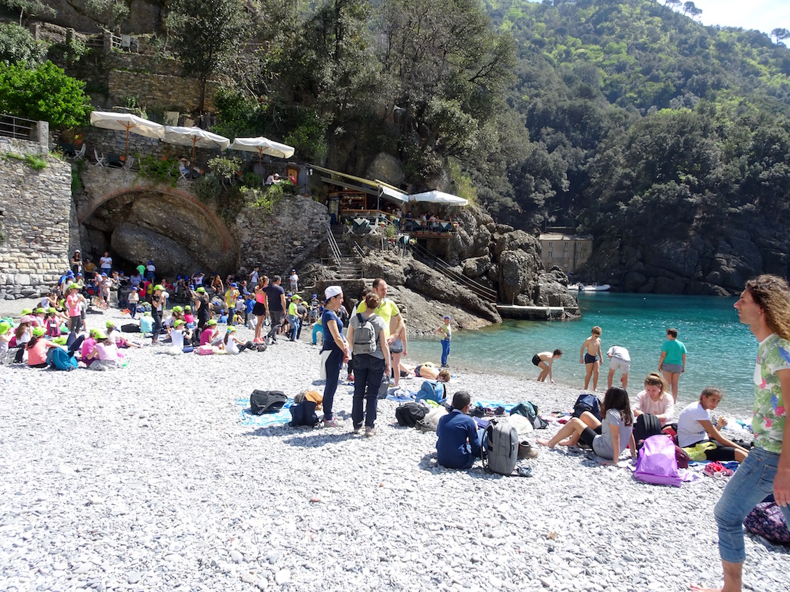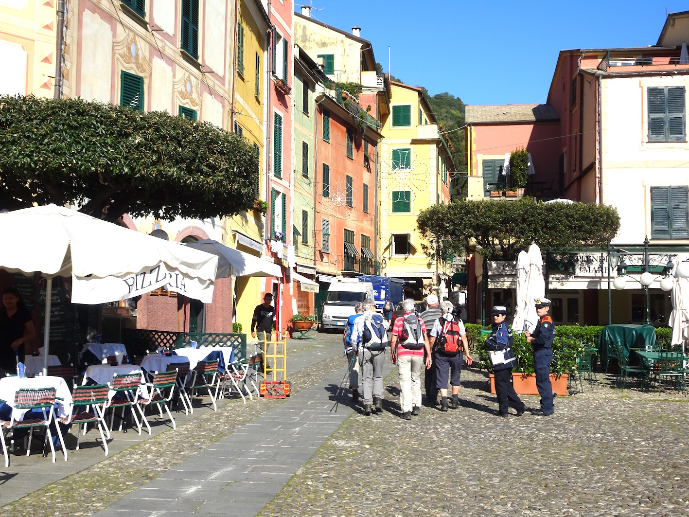 Ein Teil geht zu Fuss zurück nach Portofino, andere nehmen das Schiff