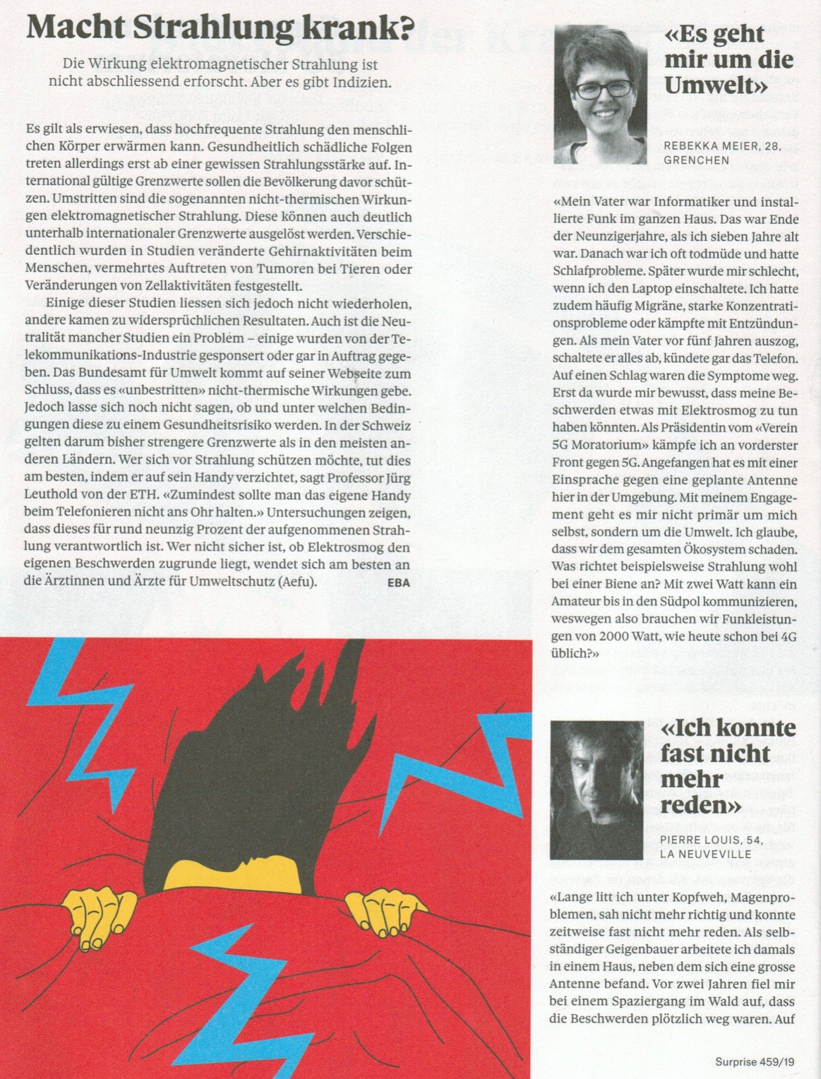 Elektrosensible erzählen by Martin Auf der Maur | Oct 6, 2019 | Alle Einsprachen gegen Antennen Standorte | 0 comments Die Zeitschrift SURPRISE vom Okt. 2019 informiert über Elektrosmog Elektrosmog Betroffene erzählen Submit a Comment Cancel reply Your email address will not be published. Required fields are marked *Comment Name * Email * Website