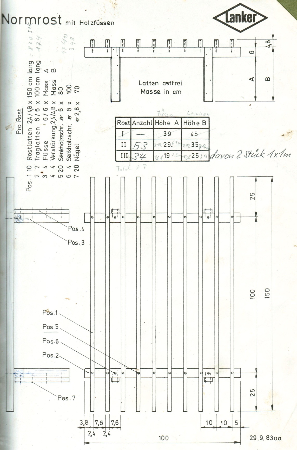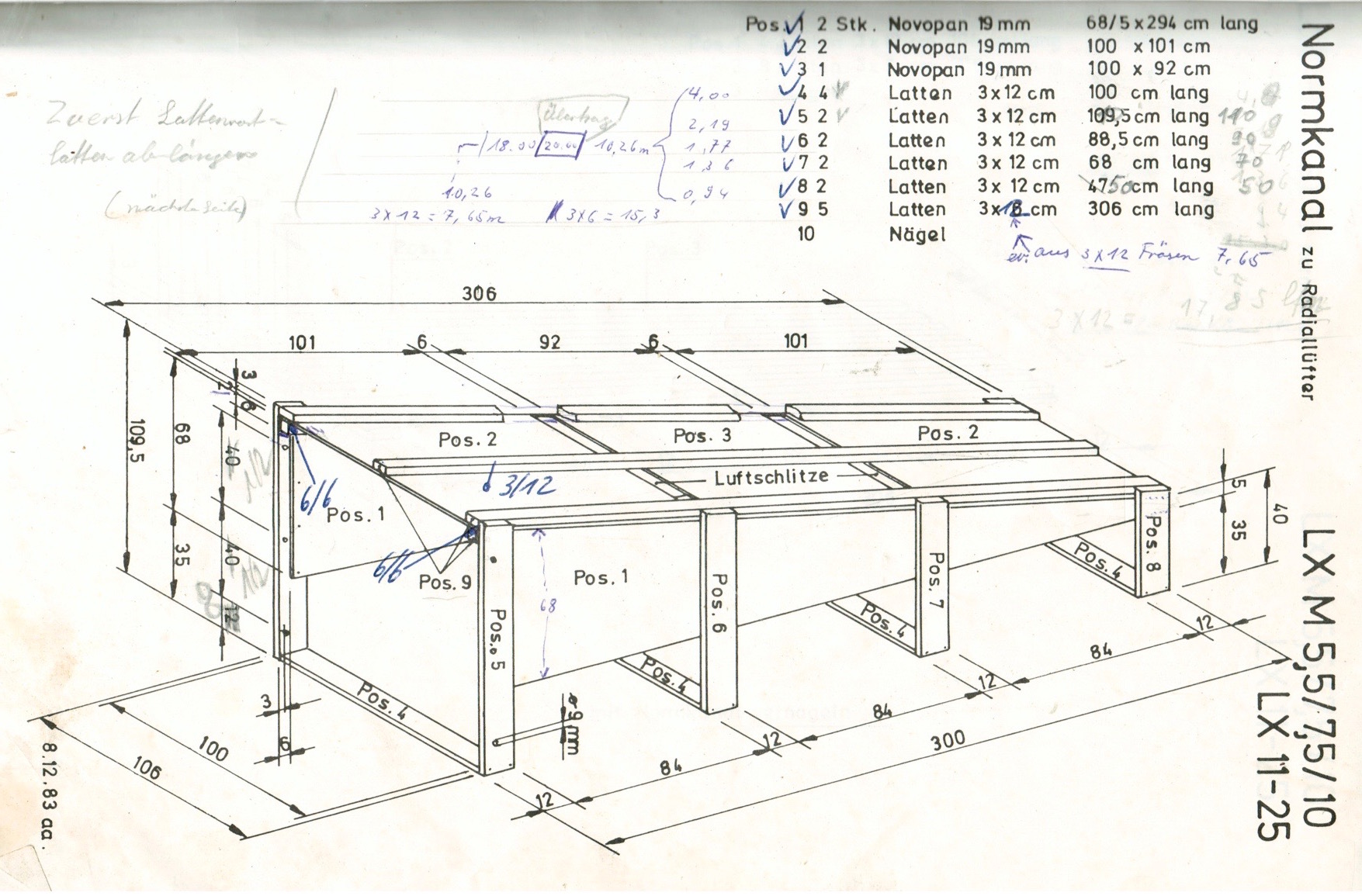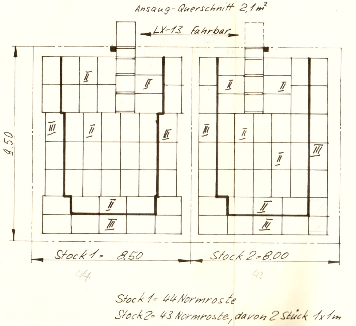 - Lufteinlauf und Rost berechnen. Siehe folgende Mass-Angaben