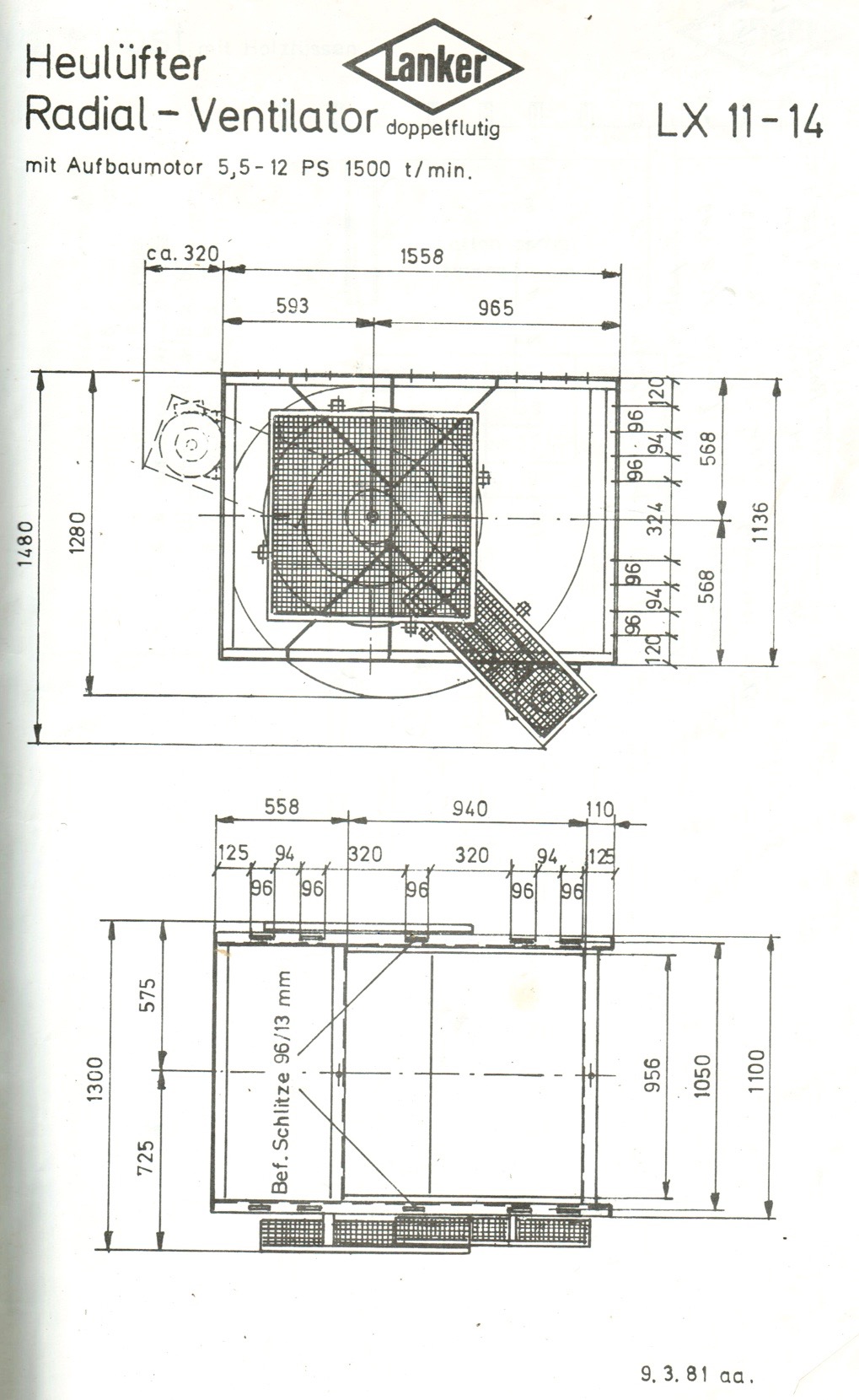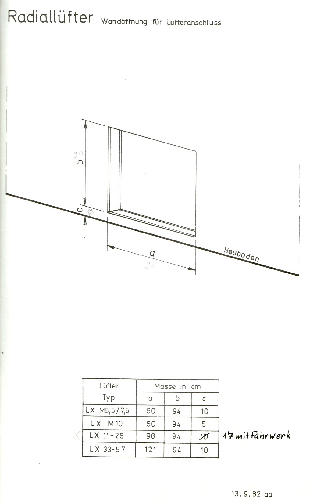 - Die grösse der Lüfter soll 1PS pro 10 m2 Grundfläche Heurost sein.