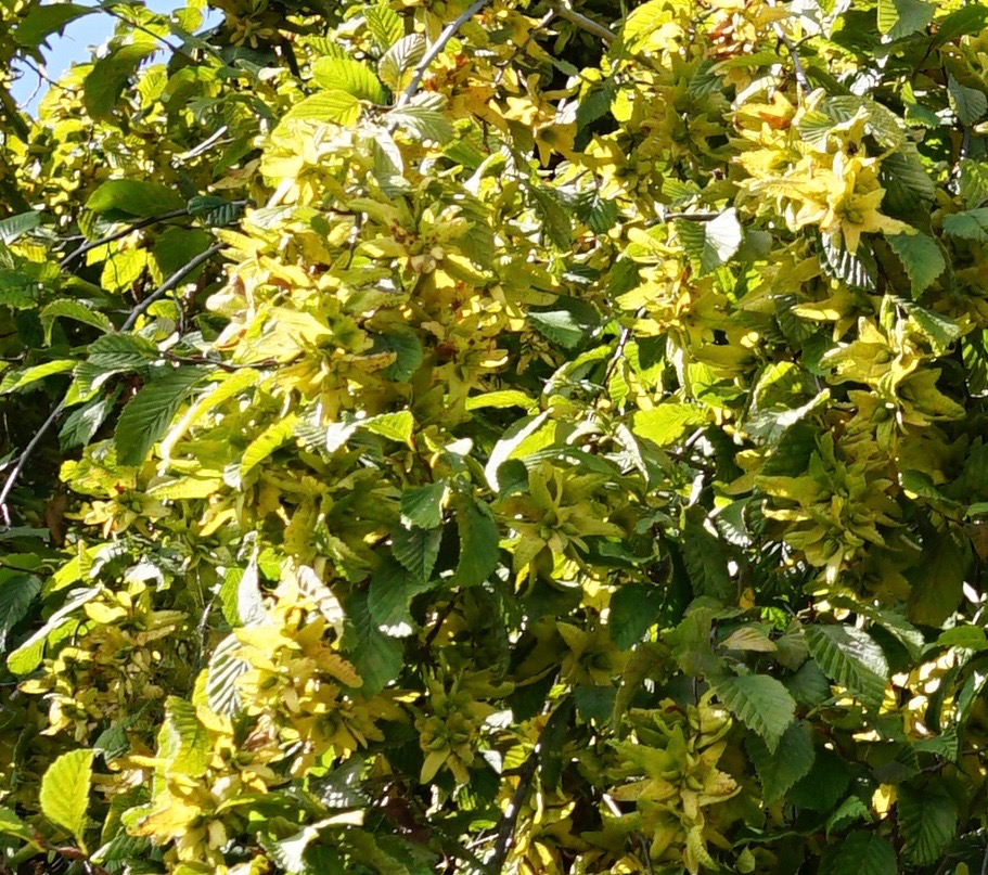 Hagenbuche mit Stress-Symtom und übermässiger Fruchtifikation