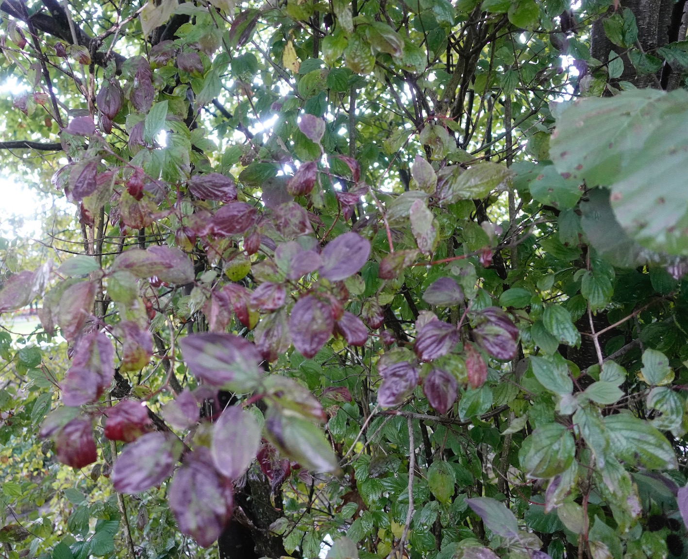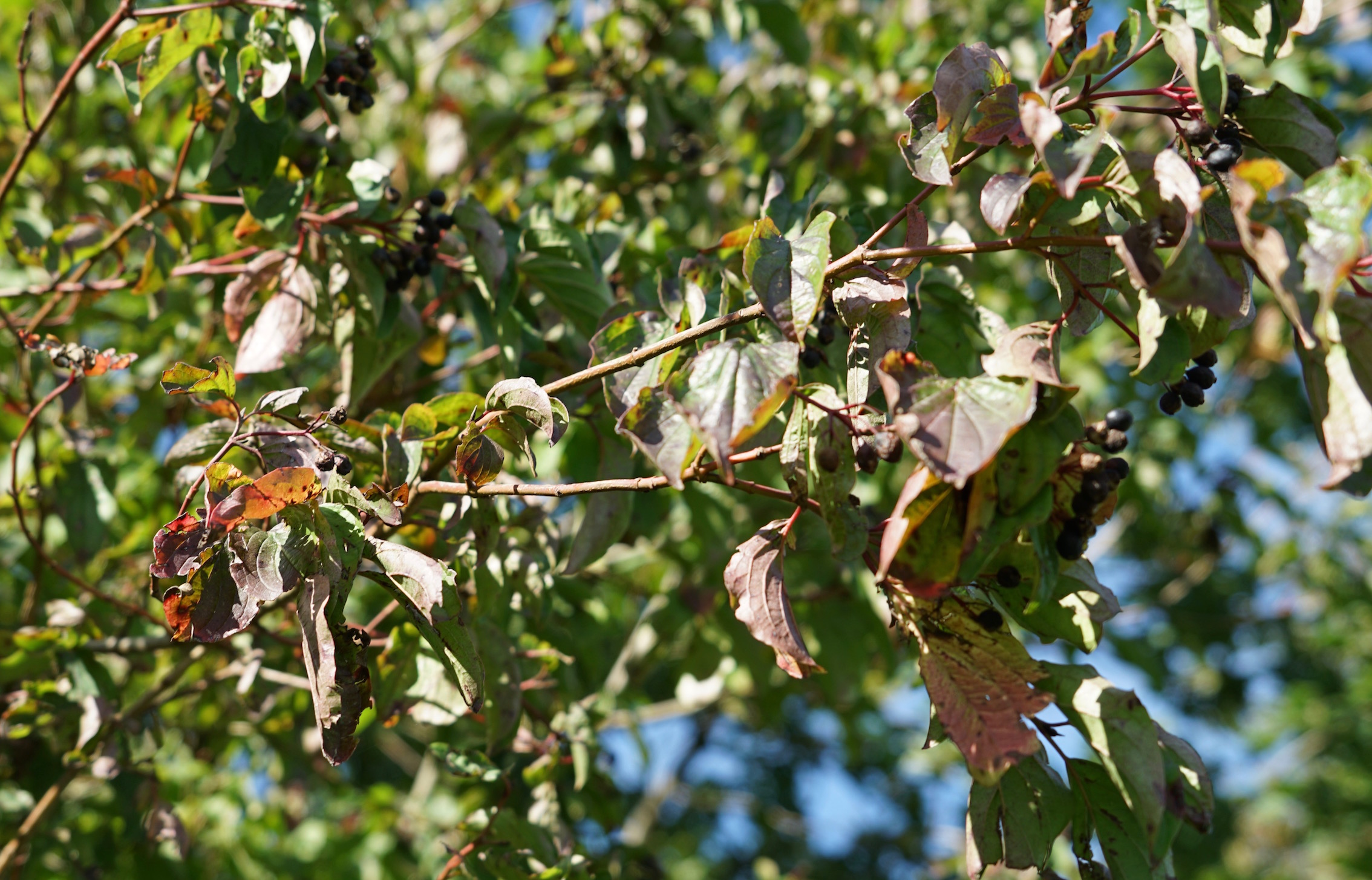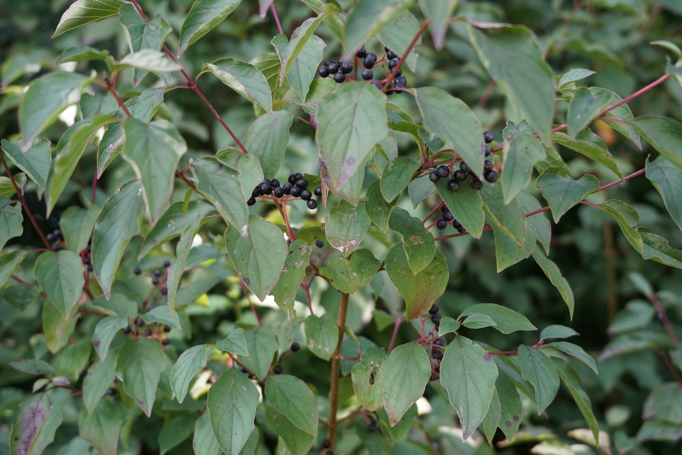 Hartriegel nahe der Arena, aber auf der abgewandten Seite. Auf der anderen Seite des Baches in Richtung Restaurant Freimann. Sogar die äusseren Blätter weisen keine Verbrennungen auf. Die Beeren sind nicht verdorrt und bleiben länger.