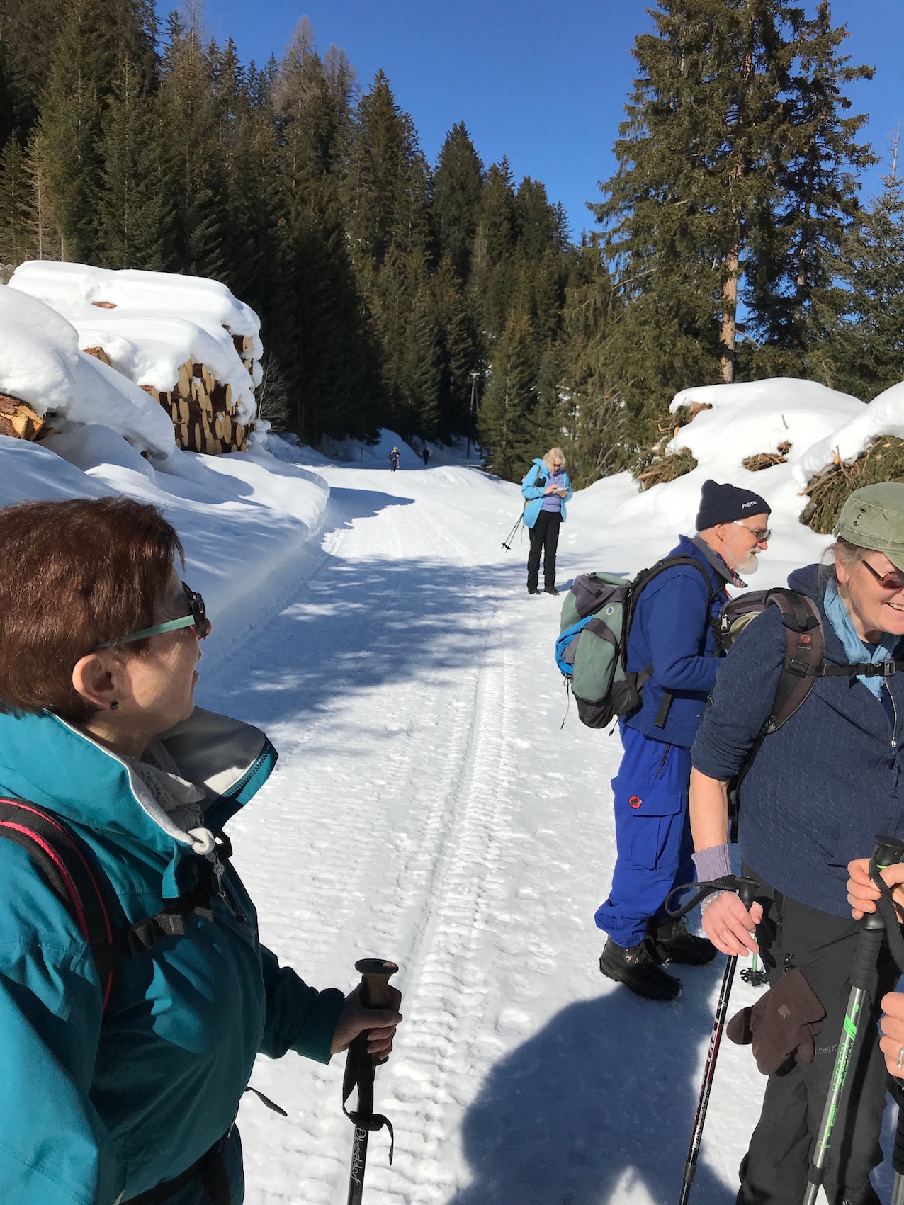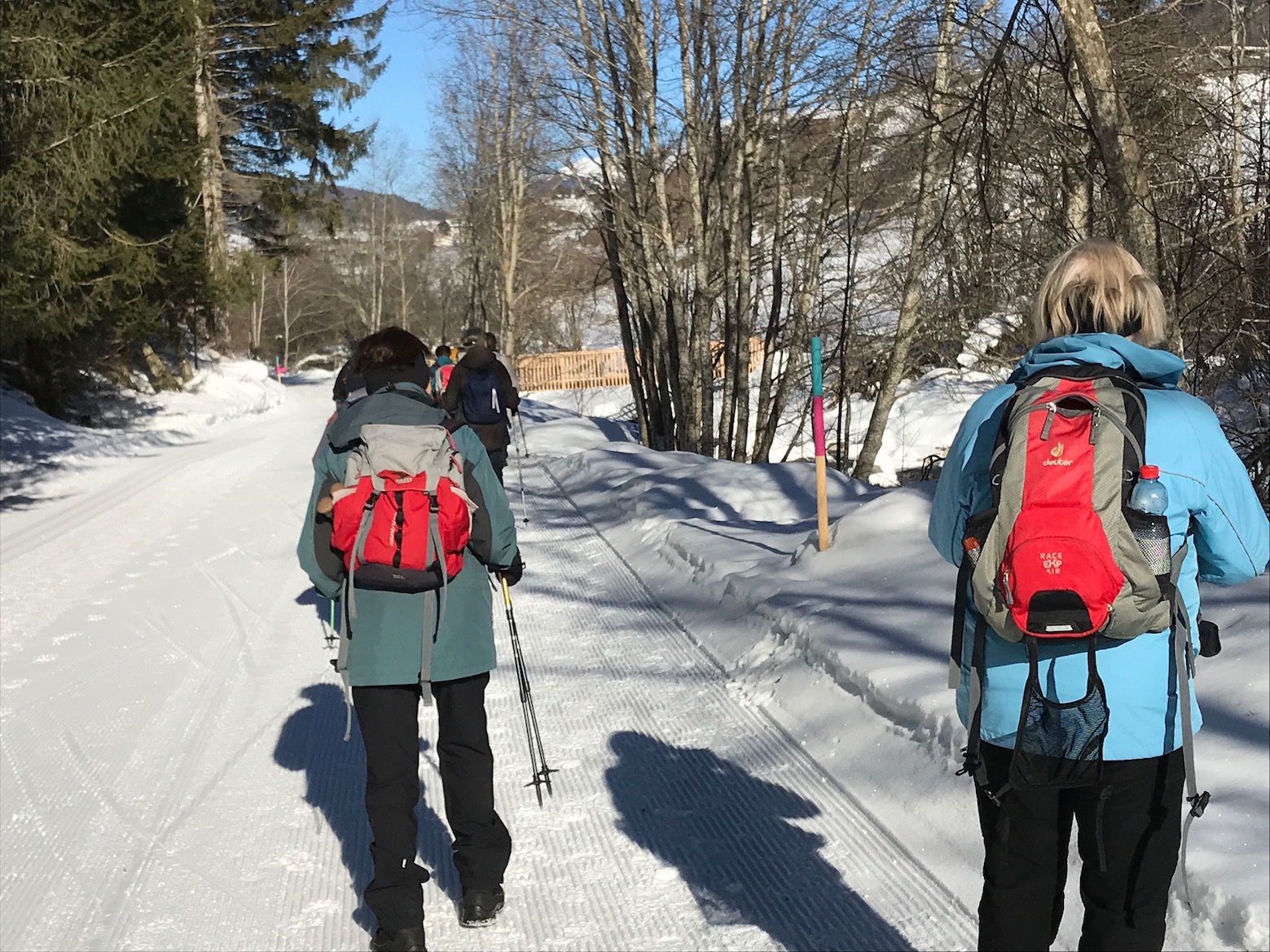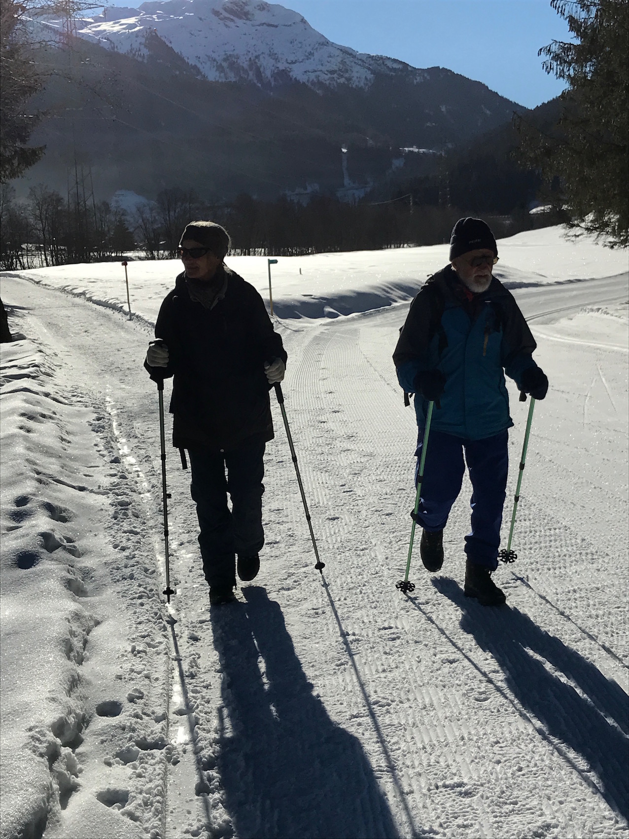 weicher leiser Schneeweg, wir geniessen jeden Schritt und freuen uns auf die kommende Kaffeepause