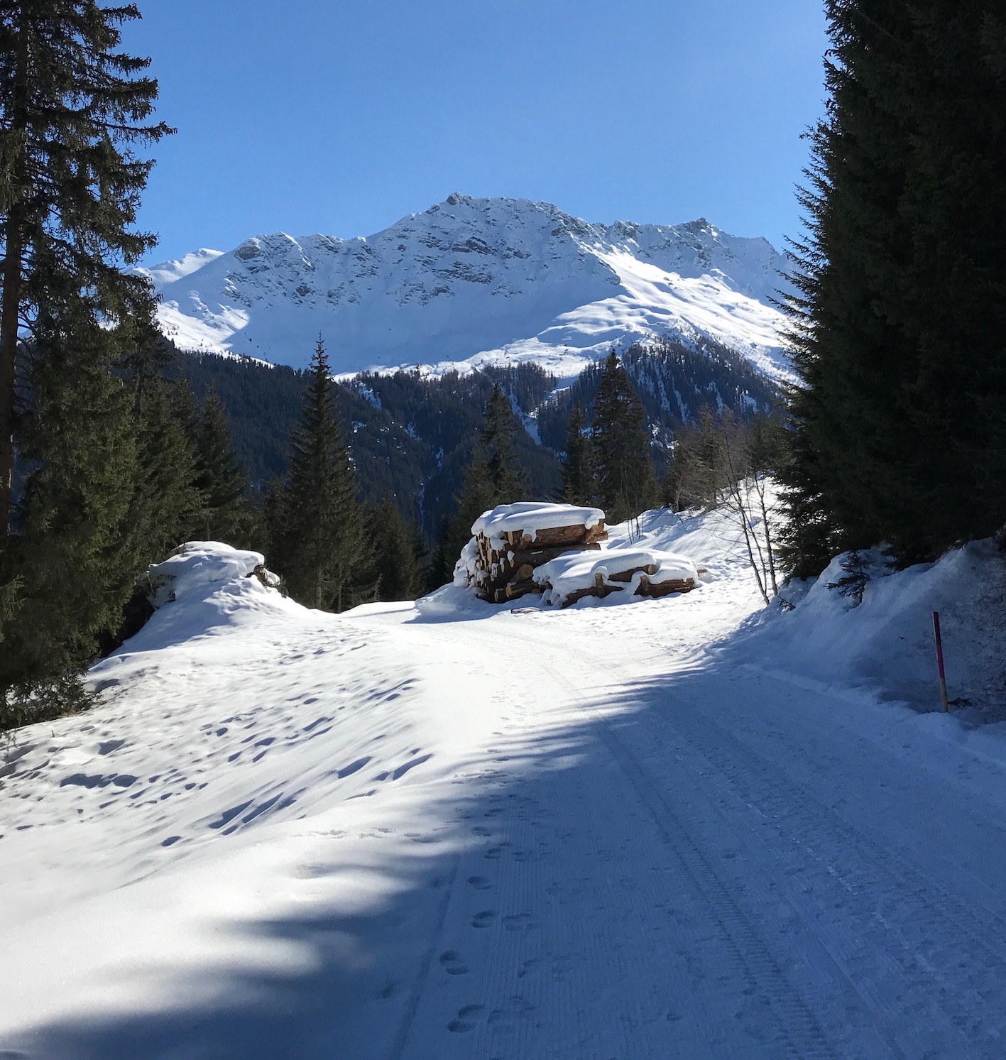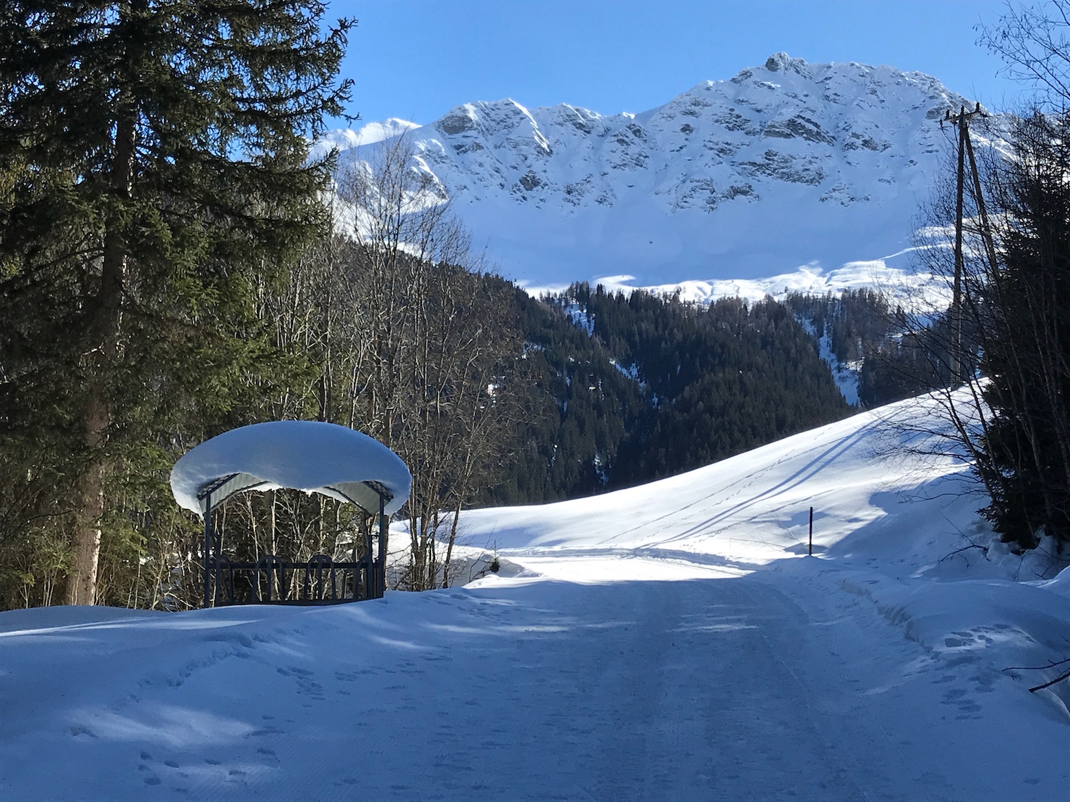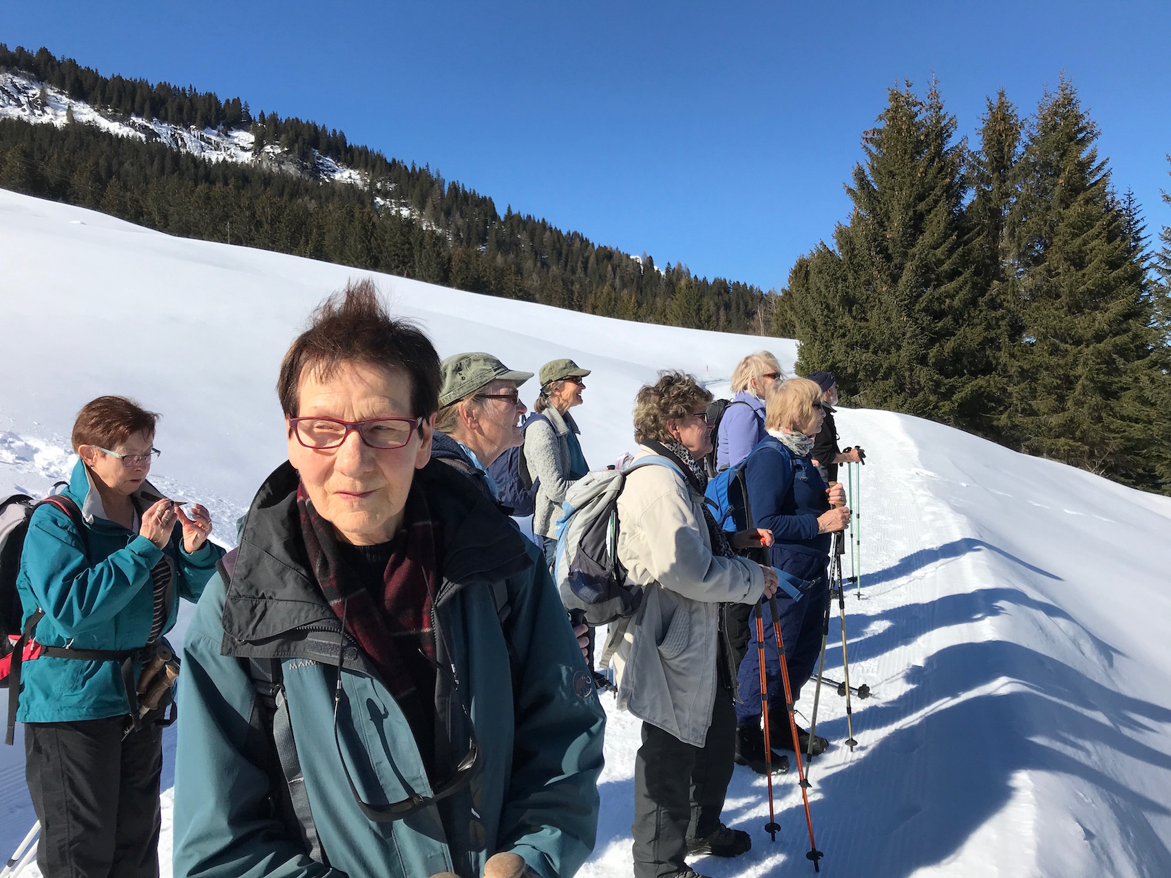 weicher leiser Schneeweg, wir geniessen jeden Schritt und freuen uns auf die kommende Kaffeepause