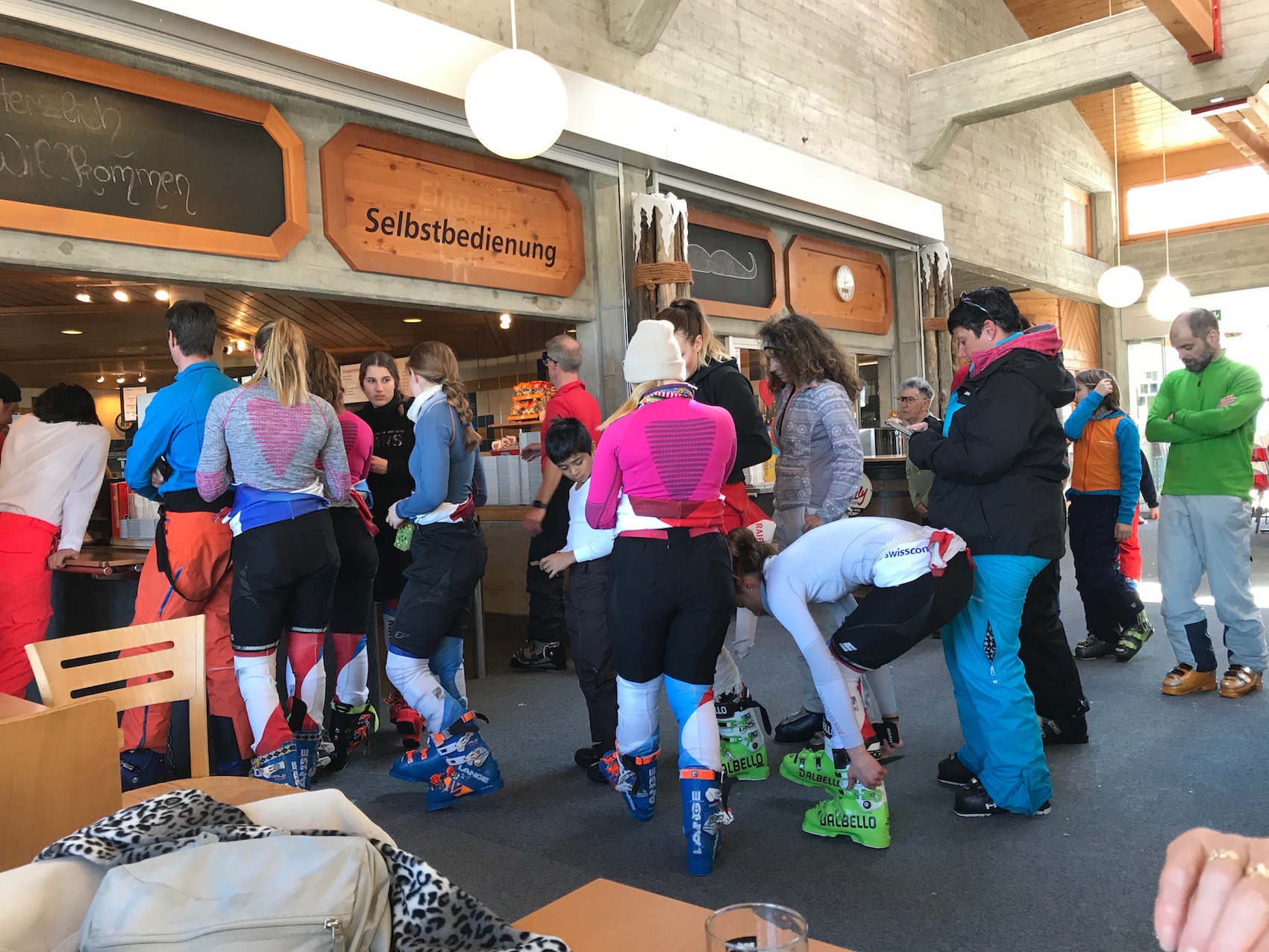 wir mussten nicht anstehen und beim Essen sahen wir die athletischen Nachwuchsfahrer der Schweizer Ski Nati