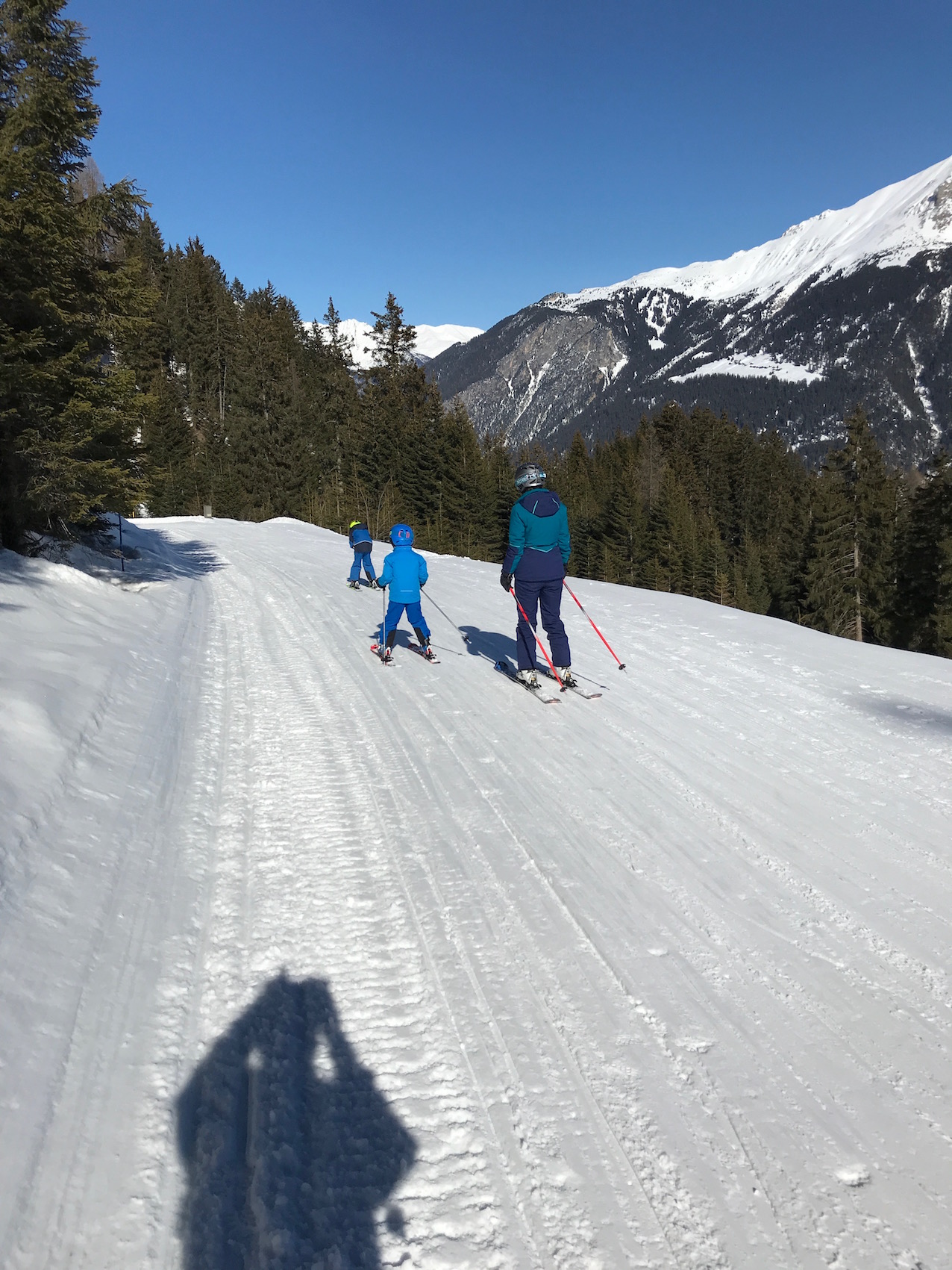 auf flacher Skipiste laufen wir wenig störend in Einerkollone