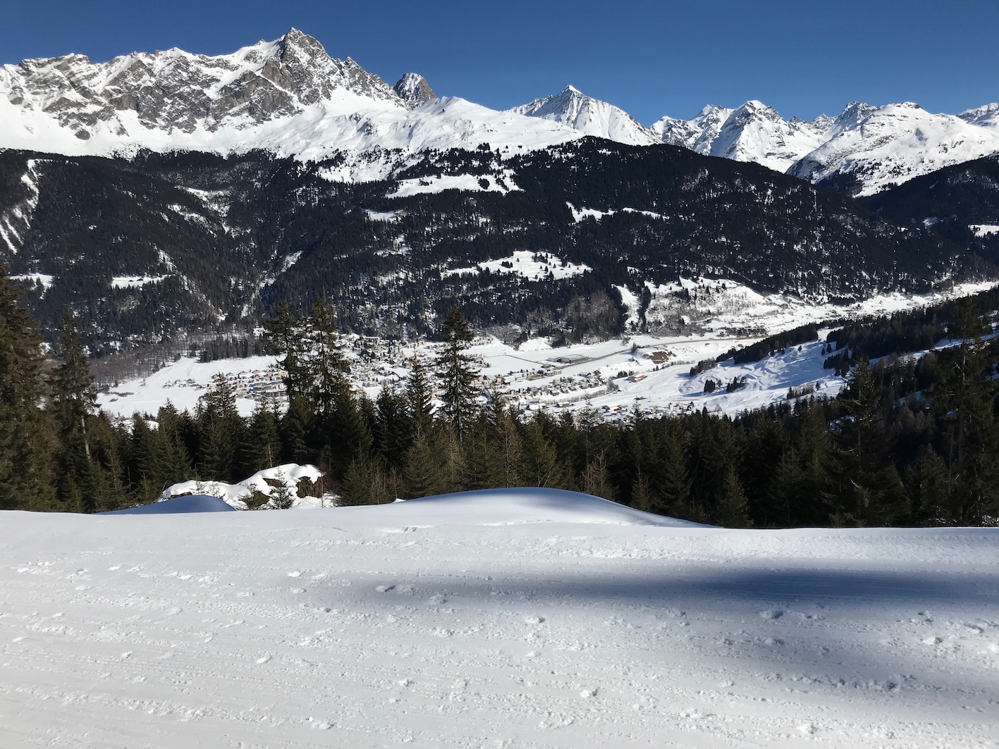 herrliches Panorama mit Sicht auf Tinizong ins Tal rechts unten